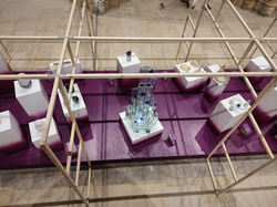 Pour finir des structures en bois chapotent le podium afin de recentrer le regard du visiteur.